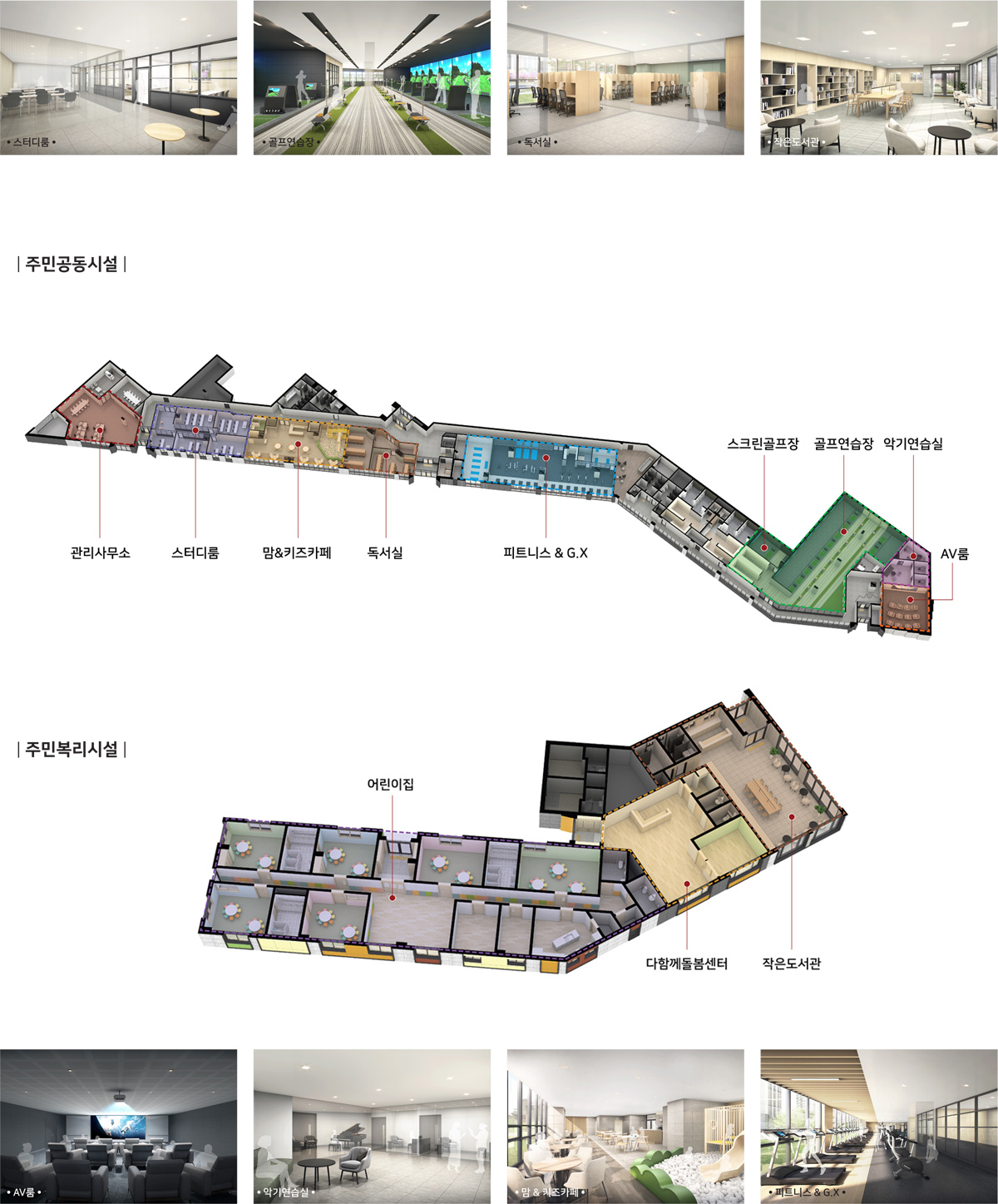 - ※ 단지내 어린이집은 신규 500세대 이상 공동주택 내 국공립어린이집의 설치·운영을 의무화한 「영유아보육법」개정·시행(19.6.25)에 따라 입주시 국공립어린이집으로 운영될 예정입니다.
